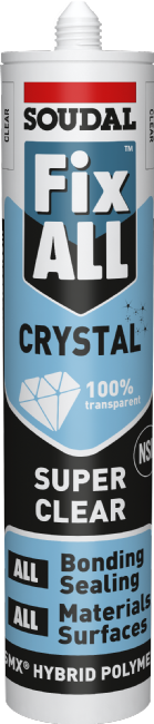 100% CRYSTAL clear sealant, adhesive and filler, based on SMX Hybrid Polymer technology. Suitable for internal and external use. Can be applied in all weather conditions. Primerless adhesion on most construction materials, including wet and damp surfaces. Contains XS1 fungicides providing ultimate mold resistance.