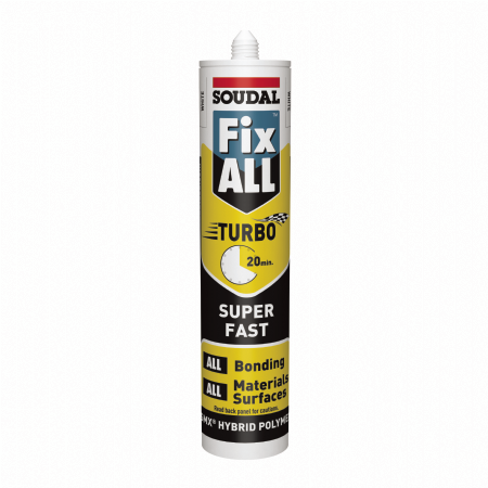 Super fast curing adhesive with exceptional final bond strength. Based on SMX Polymer Technology, Turbo has rapid strength build-up after 20 minutes. Final bond strength achieved in 3 hours. For all types of bonding applications, onto all types of surfaces, even wet or humid non-porous surfaces.